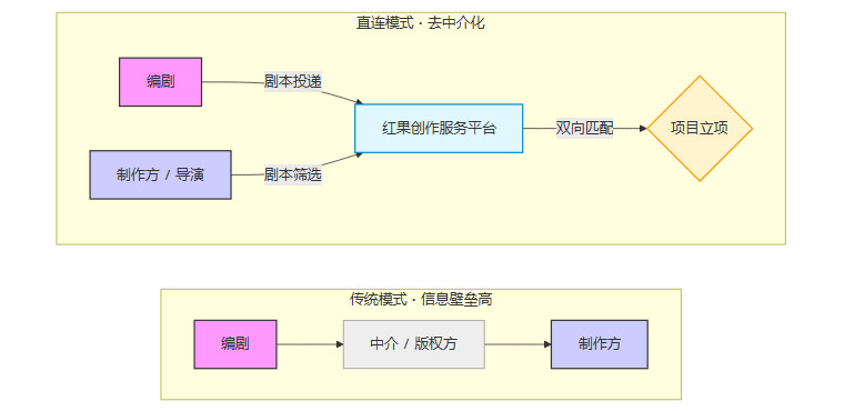 传统模式下,编剧和制作方之间隔着层层中介,信息传递效率低、成本高。直连模式打破了这种壁垒,构建了一个双向选择的内容市场(Content Marketplace)。