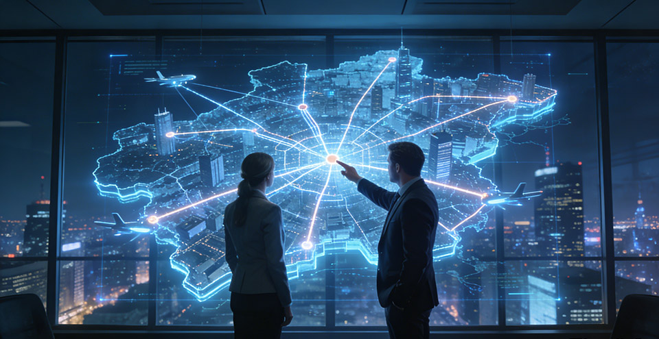 数字孪生:在虚拟空间中构建整个运营环境的数字镜像,用于模拟、预测和优化运营策略,例如评估新增一个起降场站对整个网络效率的影响。