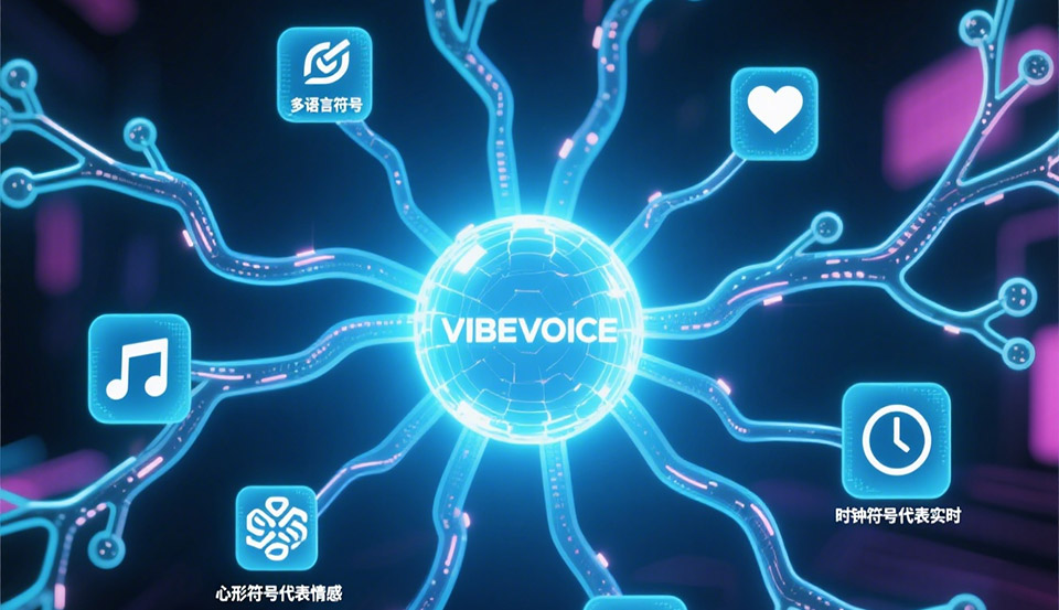 这项技术的出现,不仅仅是时长和角色数量的简单叠加。它的背后,是一套全新的架构设计与技术理念的胜利。VIBEVOICE巧妙地将大型语言模型的上下文理解能力与扩散模型的生成能力相结合,实现了在超高压缩率下生成高保真、情感丰富且交互自然的语音流。这不仅解决了传统技术的诸多痛点,更为播客、有声书、在线教育等内容创作领域带来了颠覆性的想象空间。