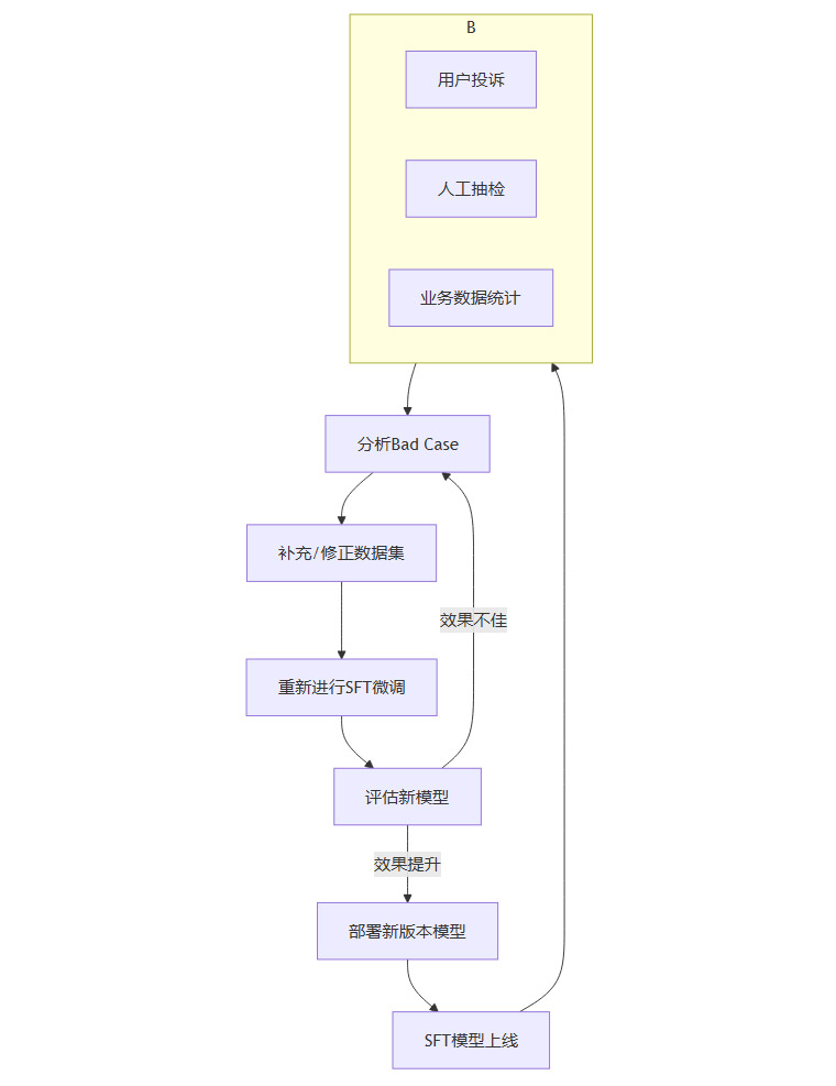 每次只补充几百到几千条经过精细筛选和标注的高质量数据,然后重新进行一次微调。这样做的好处是。