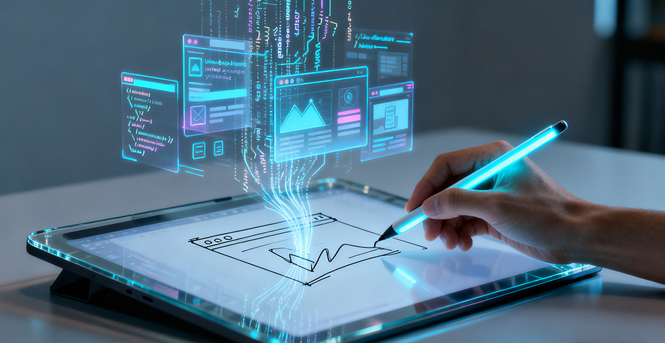 解析视觉信息:从草图中识别出 UI 布局、组件类型和基本交互逻辑。