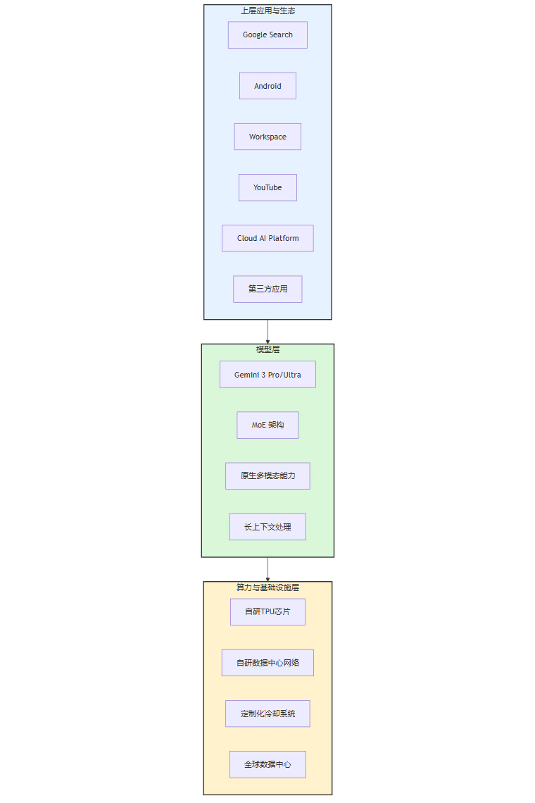 Gemini的性能飞跃,根植于谷歌长达十年的“全栈式”技术布局。这种从底层芯片到上层应用,再到基础设施的垂直整合能力,构成了其难以被复制的核心竞争力。