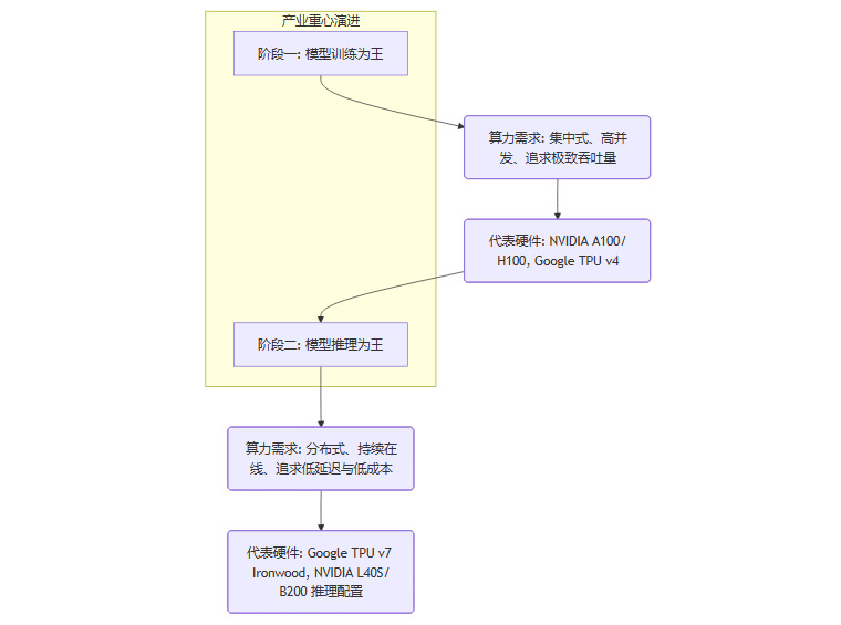 AI 模型的生命周期主要包含两个阶段,训练(Training)和推理(Inference)。这两个阶段对算力的需求截然不同。