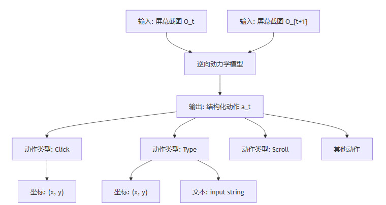 这个过程就是逆向动力学建模(Inverse Dynamics Modeling, IDM)。在机器人学中,IDM通过观察状态的改变来推断施加的力或动作,是一个非常成熟的概念。W&L巧妙地将其迁移到了GUI操作领域。