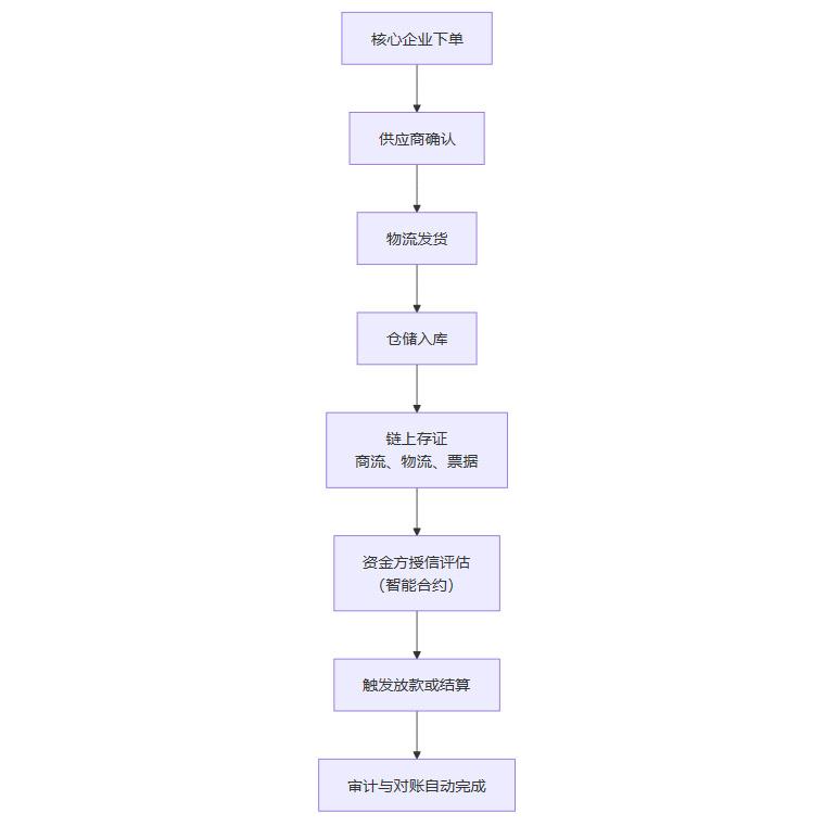 下面是一个简化的供应链金融场景流程图。