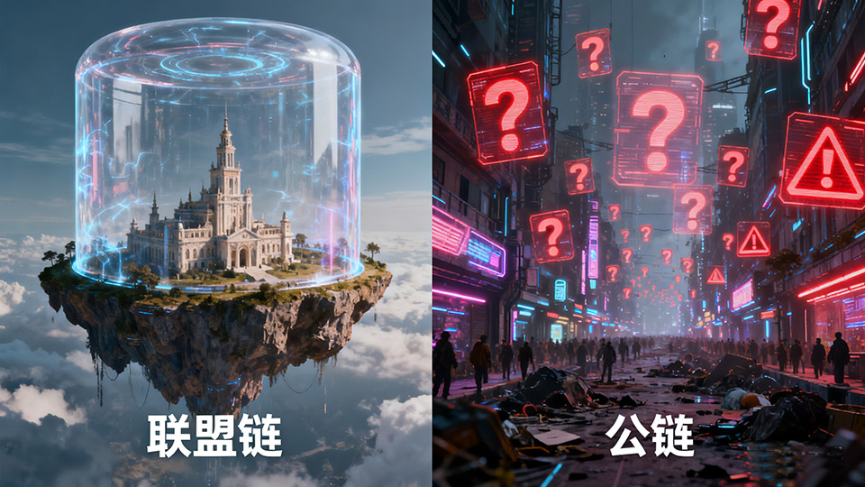 联盟链为解决公链的合规问题而生。它通过许可准入机制,将参与方限定在少数几个经过审核的机构实体内,从而天然地满足了合规与隐私的需求。
