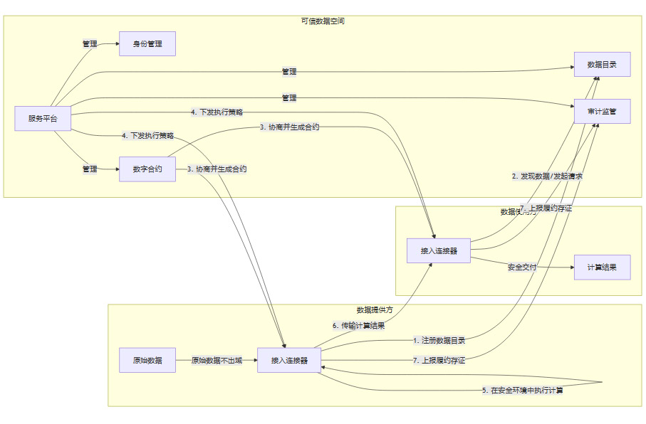 服务平台(Service Platform) 就像是机场的“中央塔台和运营中心”。它不直接接触旅客(原始数据),但负责制定飞行规则(数据流通策略)、管理航班时刻表(数据目录)、进行身份验证(参与方身份管理)以及监控整个机场的运行状态(合规监管与运营监测)。它确保所有进出港的航班都遵循统一、安全的规则。