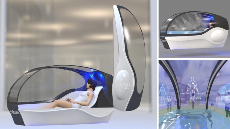高流明短焦投影仪:安装在舱体内部,可以将AI选择的治愈系画面(如星空、森林、海洋)完整地投射在用户眼前的舱盖内壁上。