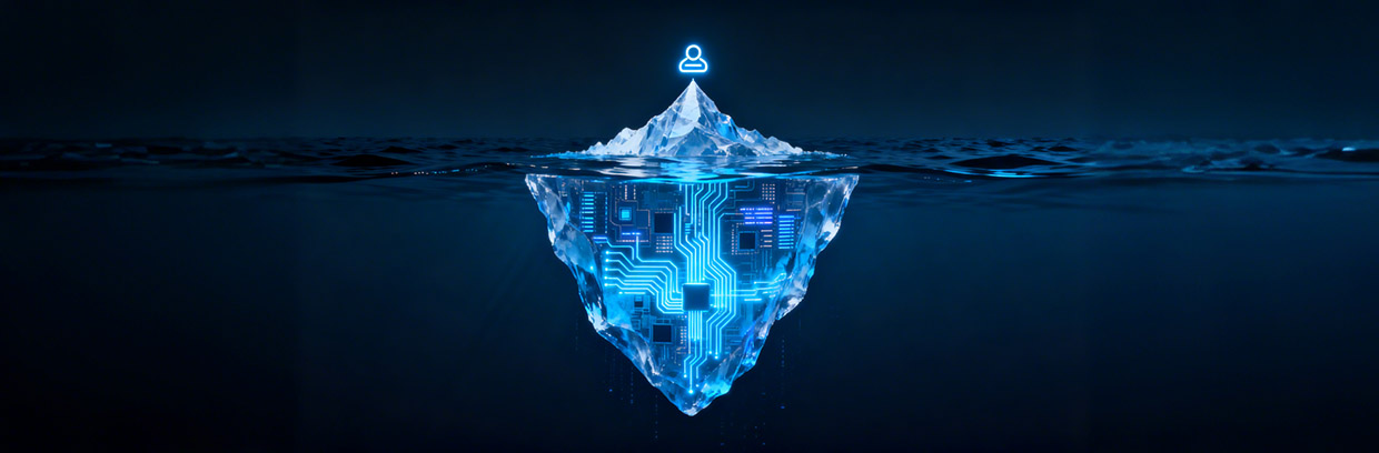 如果用经典的“冰山模型”来比喻,用户能直接感知到的“聪明对话”和“自动化功能”,仅仅是浮在水面上的10%冰山一角。而决定这艘巨轮能否稳定航行的,是那隐藏在水面之下,占据了99%体积的庞大冰体——一套完整且复杂的系统工程。