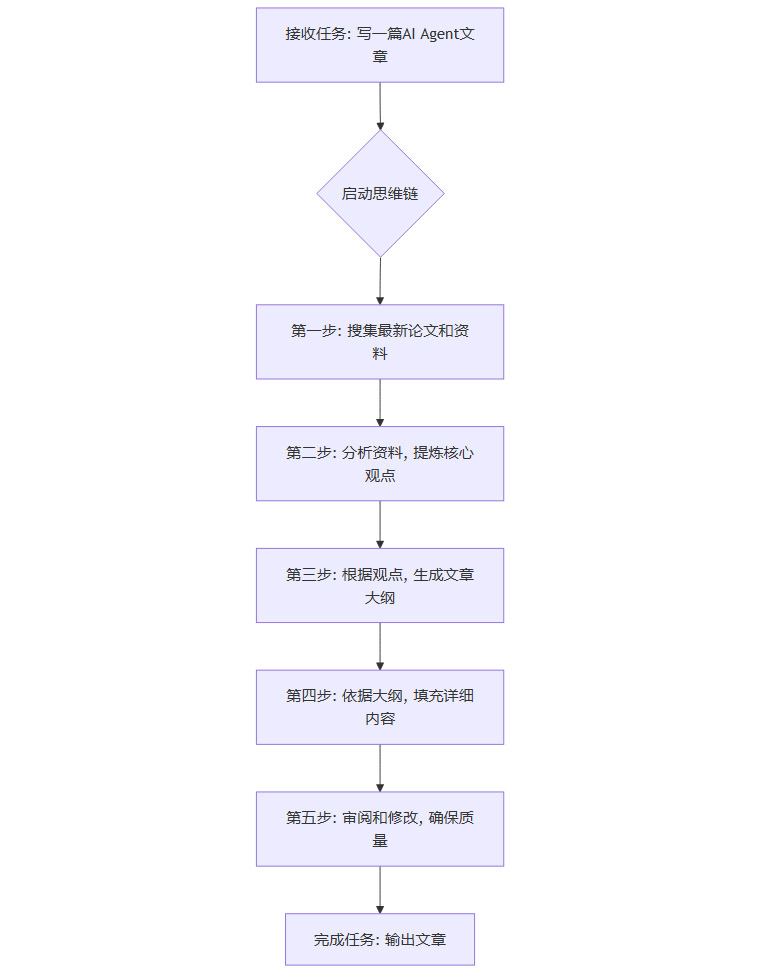 比如,当接到“写一篇关于AI Agent的文章”这个任务时,它的思维链可能是这样的。