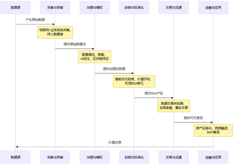 RDA从原始数据到最终价值实现,需要经历一个复杂而精密的流程。这个流程催生了一个分工明确的产业链,我们可以将其划分为五大核心环节。这五个环节环环相扣,共同构成了RDA的价值创造闭环。