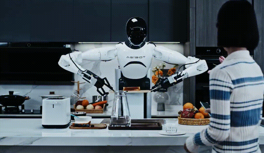 上周五,知名科技博主稚晖君在微博上预告了一个“好东西”。这周一,智元机器人就迫不及待地公布了这款新产品。这次的亮点不仅在于机器人能够端茶倒水、煮咖啡,甚至还能把面包放进烤箱、涂抹果酱,最后送到你面前,整个过程行云流水。此外,它还可以担任前台迎宾的角色。