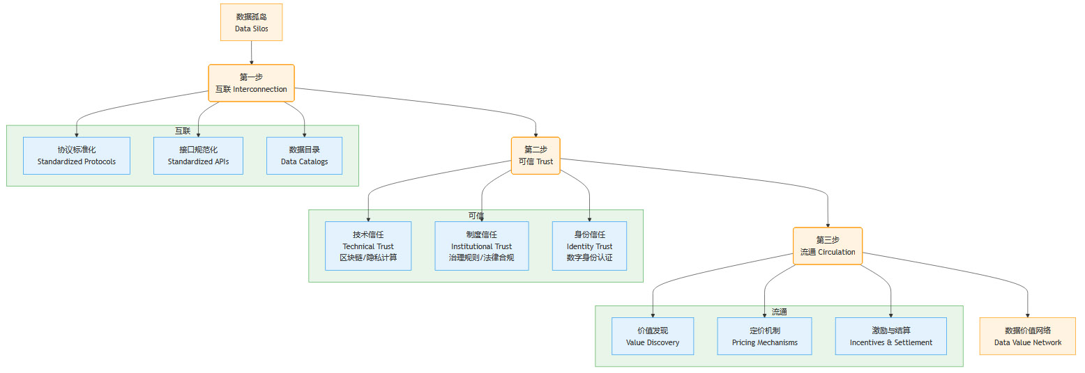 二、🗺️ 破局之路:“互联—可信—流通”三步范式深度解析