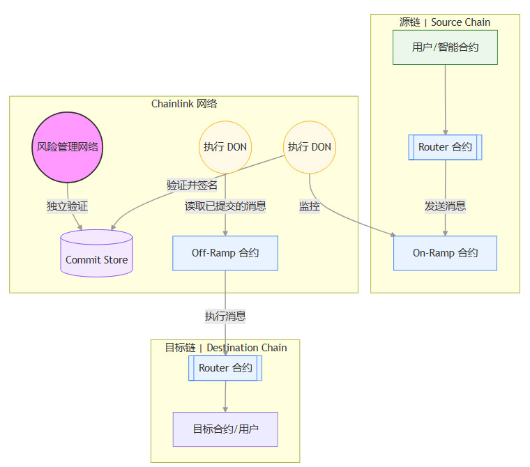 出口(Off-Ramp):执行DON在确认承诺无误后,将消息和签名提交至目标链的Off-Ramp合约。该合约验证签名,确保消息来自合法的CCIP网络,然后执行消息内容(如铸造代币或调用另一个合约)。