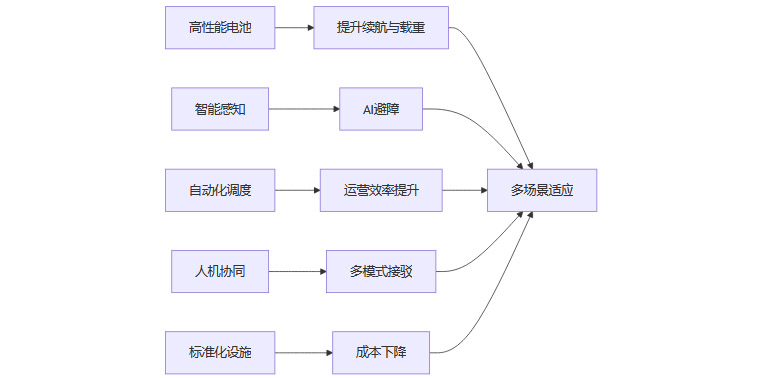 技术进步:无人机续航、载重、智能避障、AI调度等技术持续突破,适应更复杂场景。