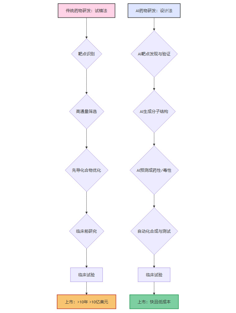 分子生成。更进一步,生成式AI模型(如GNN、Transformer)可以从零开始设计具有特定化学性质和生物活性的全新分子结构,即“AI制药”。