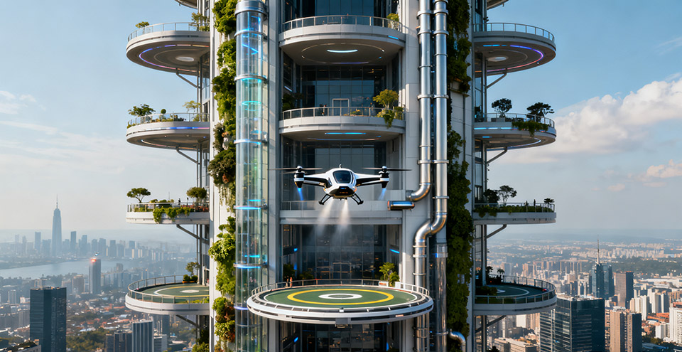 三维立体化:在土地极度稀缺的城市核心,可能会出现多层、立体的垂直起降场综合体,将起降、充电、维保、商业等功能垂直整合在一栋建筑内。