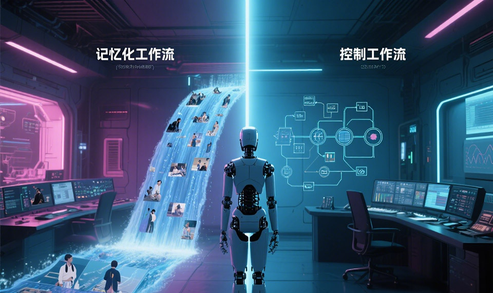 这个线程就像我们大脑的后台进程,负责持续不断地感知环境。它会将接收到的视频、音频等多模态信息流,自动地、默默地处理并转化为结构化的长期记忆。这个过程是自主发生的,不需要用户下达任何指令。它确保了AI能够像人一样,在不经意间积累生活经验。控制工作流 (Controlling Workflow)