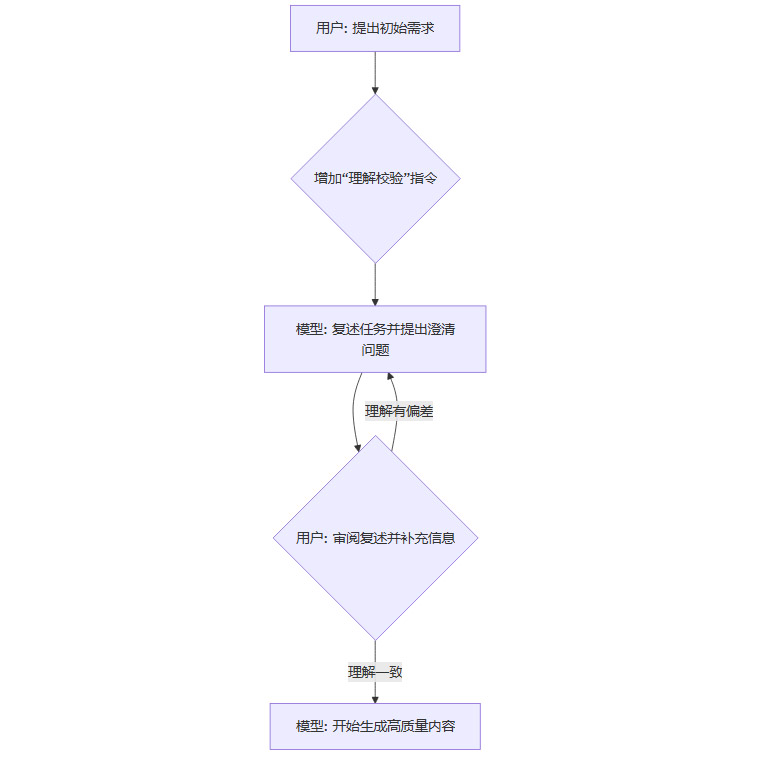 在布置一个复杂任务时,我们无法保证自己一次性就能把所有信息都描述清晰。为了避免因信息缺漏导致的返工,我们可以在下达指令后,增加一个**理解校验(Comprehension Check)**环节。