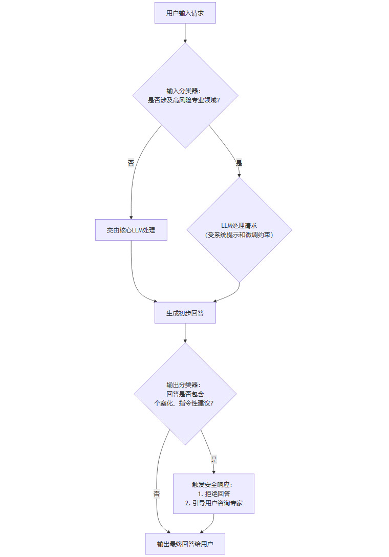 这个流程清晰地展示了,模型的响应不再是单一的生成过程,而是一个内置了多重校验与风险控制的复杂工作流。