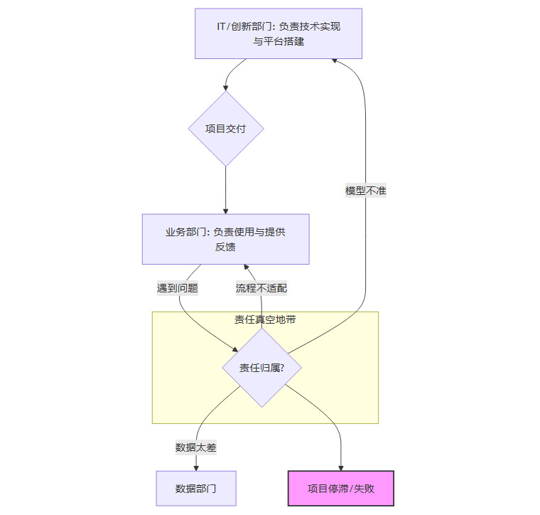 一个AI项目从启动到价值实现,其责任传递路径往往是断裂的: