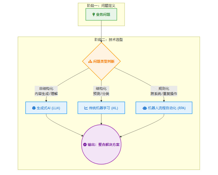 当问题核心是创造性或理解性任务时,如自动撰写报告、进行多轮对话式客服,生成式AI是首选。