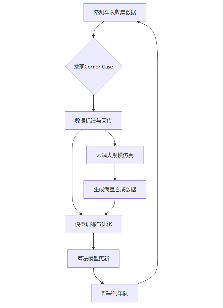 自动驾驶是一个典型的长尾问题。现实世界中存在无数罕见但致命的极端场景(Corner Cases)。仅仅依靠路测,无法穷尽这些场景。因此,构建一个高效的数据和仿真闭环至关重要。