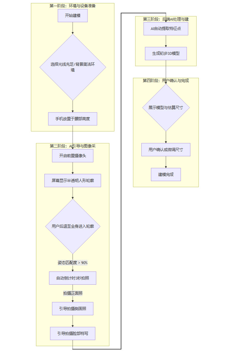 结合用户输入的多维尺寸数据和多视角照片,后端AI引擎将执行以下步骤。
