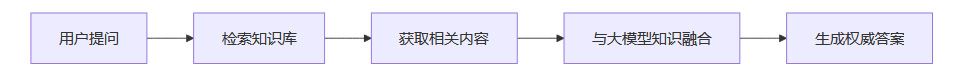 融合:将检索到的信息与大模型原有知识结合,生成更准确、权威的答案。