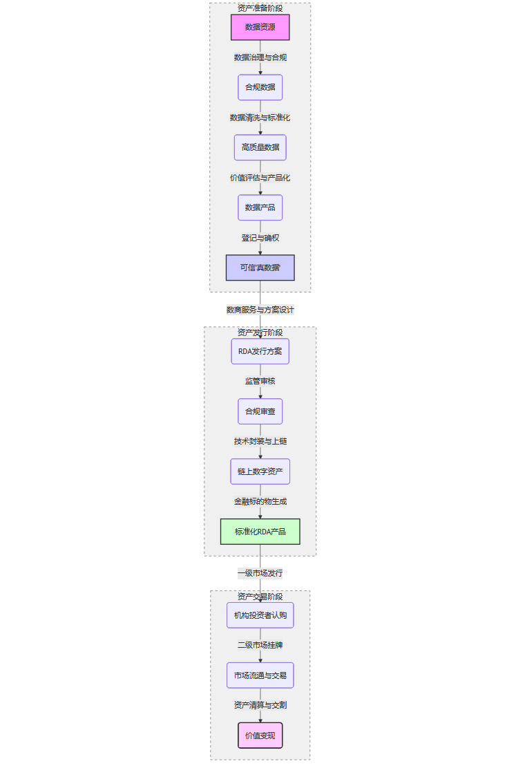 将一个抽象的数据资源,转化为一个可以在资本市场流通的标准化资产,需要一套严谨且环环相扣的流程。RDA的运作流程可以被清晰地划分为资产准备、资产发行和资产交易三大环节。