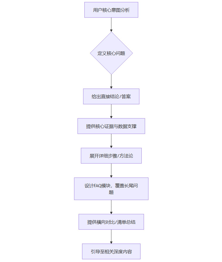 这个流程确保了内容既能快速满足用户的核心需求(前三步),又能提供足够的深度和广度,同时结构化的模块(FAQ、对比、清单)极易被AI抓取和复用。