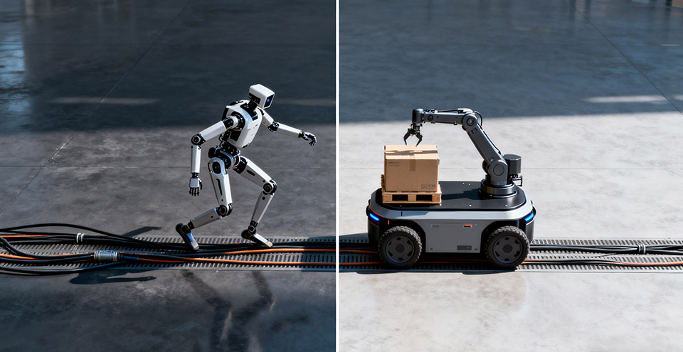 人形机器人 vs. 轮式AMR+机械臂 方案对比