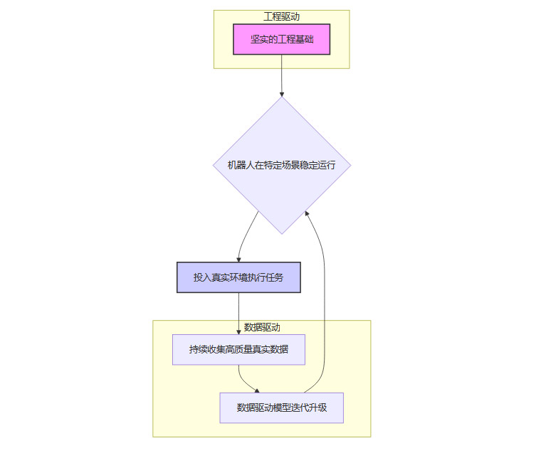 数据辅助迭代 在机器人能够稳定运行的基础上,再利用收集到的真实数据,对模型和算法进行迭代优化,逐步提升其适应性和智能水平。