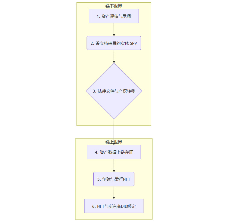 将现实资产与链上NFT+DID进行绑定的过程,是一个涉及法律、技术和审计的复杂流程。