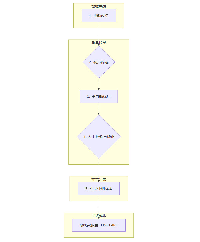 生成评测样本 最终,团队获得了348个高质量的标注视频,构成了ELV-Halluc基准的核心。