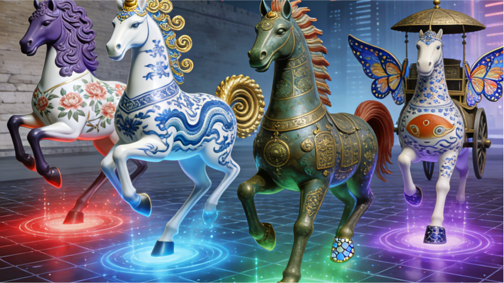 这是一场传统基因与数字细胞的创造性融合。从西周盠驹尊到汉代铜奔马,从唐代三花马到昭陵六骏,这些古老的文物跨越千年时空,在数字世界中重焕生机 。它们与现代数字艺术、设计理念相互碰撞、融合,创造出全新的文化表达形式 。这种融合,不仅让传统文化在新时代找到了新的生长点,也为数字艺术注入了深厚的文化内涵,让数字资产成为连接过去、现在与未来的文化桥梁 。