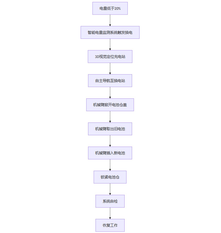 以下以Mermaid流程图形式,直观展现机器人自助换电的完整流程: