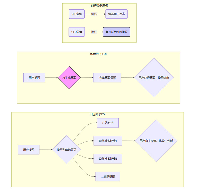 这就像过去商家在超市里争夺货架上最好的位置,而现在,他们争夺的是超市导购员(AI)脑子里的“首选推荐”。当导购员发自内心地告诉你“买这个牌子就对了”的时候,它的说服力远比货架上的任何一张广告海报都强大。