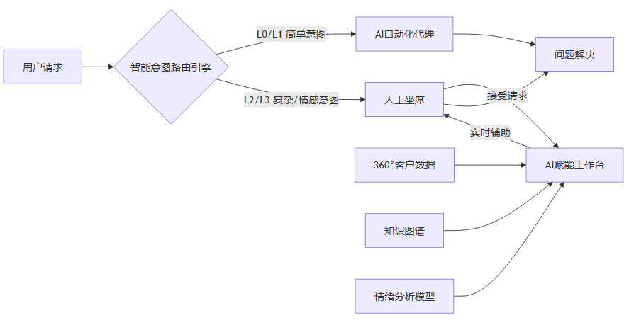 破解信任赤字的关键,在于从“替代人工”转向“增强人工”,构建一套人机无缝协同的服务架构。其核心设计理念是,让AI处理其擅长的标准化、高频次任务,同时将人类专家解放出来,专注于处理高价值、高情感、高复杂度的交互。