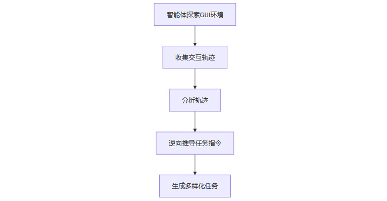 任务逆向生成,是指通过分析智能体在GUI环境中的探索轨迹,反向推导出能够覆盖多样场景和能力边界的自然语言任务指令。这一过程不仅丰富了训练任务的多样性,还能动态适配智能体当前的能力,实现“以学定教”的课程学习策略。