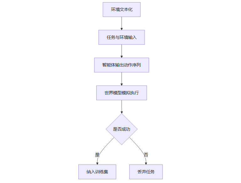 文本世界模型筛选挑战性:筛选机制确保每个任务对智能体具有适度挑战性,避免过于简单或过于复杂的任务。