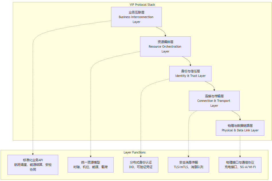 解决问题的核心,是制定并推行一套开放、统一的“垂直起降场互操作性协议”(Vertiport Interoperability Protocol, VIP)。这套协议的定位并非取代各厂商的私有系统,而是作为它们之间的“通用翻译器”和“信任粘合剂”,将分散的基础设施连接成一个逻辑上统一的网络。