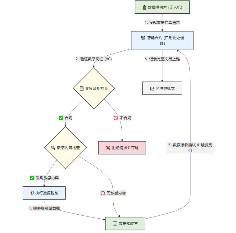 合规自动执行,当航拍无人机采集的数据需要共享时,可以设计一个智能合约。该合约会自动检测数据中是否包含地理敏感区域或人脸信息。如果检测到,合约会自动触发脱敏处理程序,或者直接拒绝该笔数据共享请求,从而确保数据流通的每一步都符合法律法规,极大地降低了企业的合规风险。