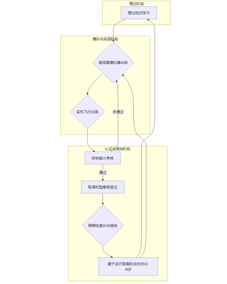 这个架构强调了几个关键点。模拟器训练是核心枢纽,它连接了理论与实践。考核是能力的“试金石”。而**基于数据的持续优化(如先进资格计划AQP)**则让整个体系具备了自我迭代和进化的能力。