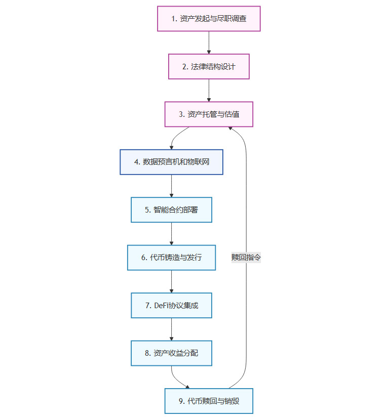 RWA的本质是一个复杂的跨域工程,涉及法律、金融与技术的深度耦合。一个完整的RWA生命周期,可以解构为**“链下资产确权-法律结构封装-链上代币铸造-DeFi协议集成-资产清算赎回”**五个核心阶段。