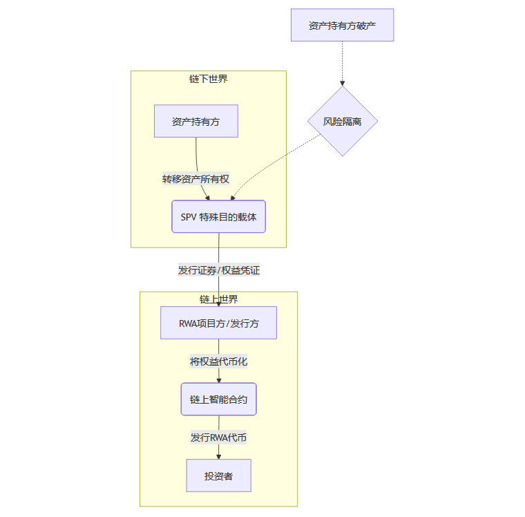如上图所示,资产的法律所有权被真实地转移给了SPV。如此一来,即便原始的资产持有方或RWA项目发行方面临破产清算,SPV及其持有的资产也不会受到波及,从而最大限度地保障了链上代币持有者的权益。架构师必须与顶尖的法律顾问紧密合作,确保这一结构的每一步都无懈可击。