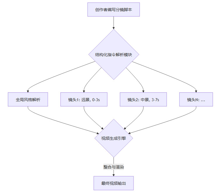 这种脚本化的输入方式,本质上是为创作者和 AI 模型之间建立了一套统一的、高效的通信协议,让“导演意图”得以被直接表达和执行。