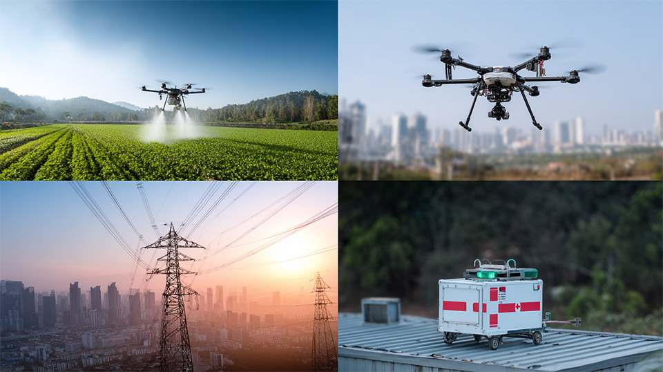 应急救援,在地震、洪水等灾害发生后,无人机可以第一时间进入灾区,勘察灾情、投送物资、搜索失联人员,为生命救援争取宝贵时间。