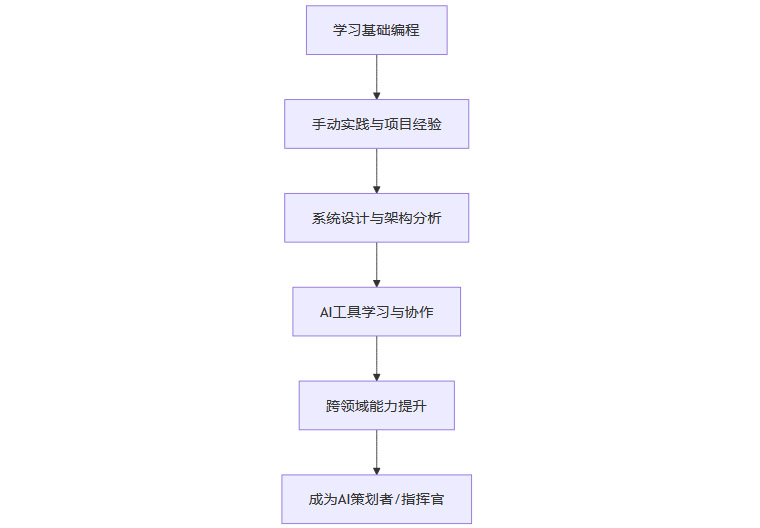 这一趋势不仅仅是效率的提升,更是行业结构的深刻变革。初级开发者的成长路径被压缩甚至切断,开发者的角色正在发生本质性的转变。未来的开发者不再是单纯的“代码工人”,而是需要具备系统设计、产品思维、AI协作、跨领域整合等多重能力的“AI策划者、协调者、指挥官”。团队结构趋于精简,协作重心上移至战略与创新层面。新兴混合型职业和人机协作成为主流,开发者需具备系统设计、产品思维、AI协作、跨领域整合等复合能力。初学者应注重基础能力培养,主动驾驭AI。行业和个人唯有积极适应、持续学习,才能在AI时代实现与AI的深度协作与共生,开辟新的价值空间。