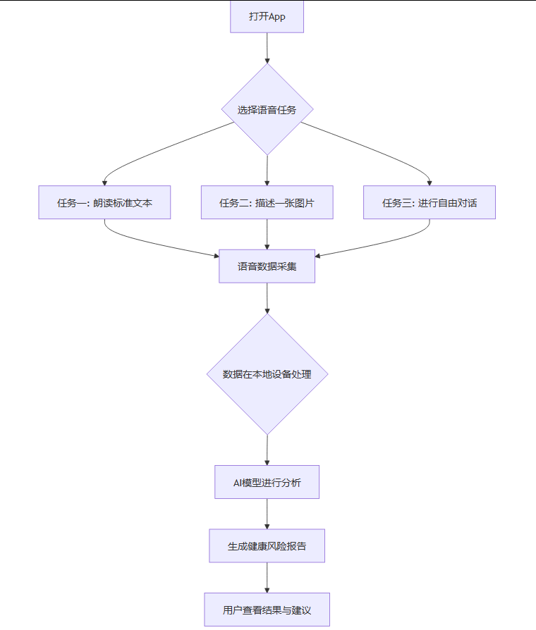 用户只需花费三到五分钟,根据应用的引导完成几个简单的语音任务,即可获得一份个人健康风险评估报告。